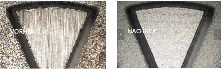 清洁时间约为15秒。清洗后表面无损伤,基材清晰可见。可以通过喷射细小的塑料颗粒,干净的去除沉积物,而不会损坏模具。